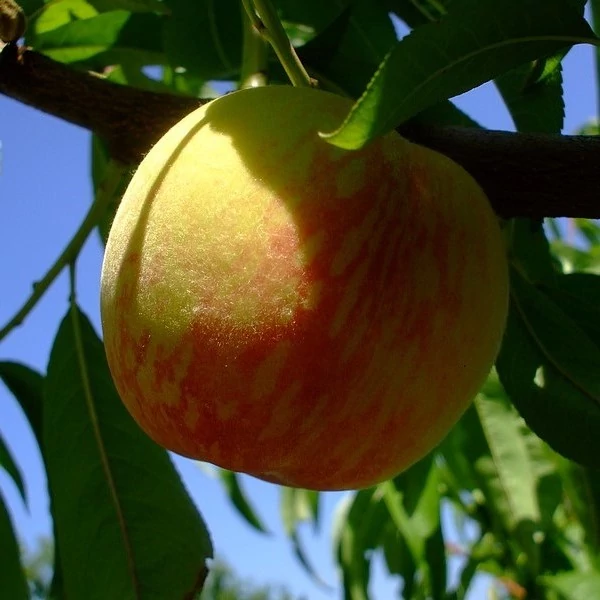 Gyümölcs színe, alakja: kissé lapított gömb alakú, gyümölcse sárgás-zöld színű, pirossal csíkozva, a napérte oldalán megpirosodik.